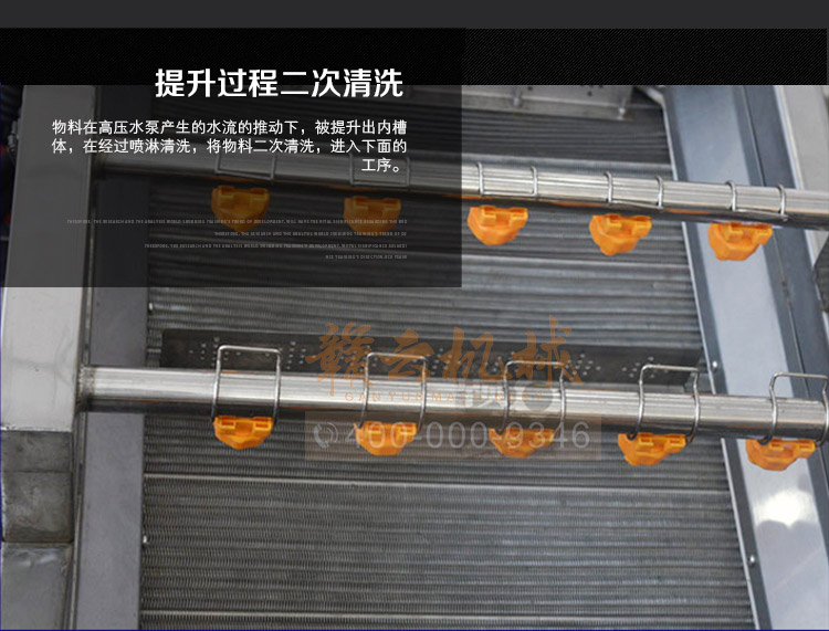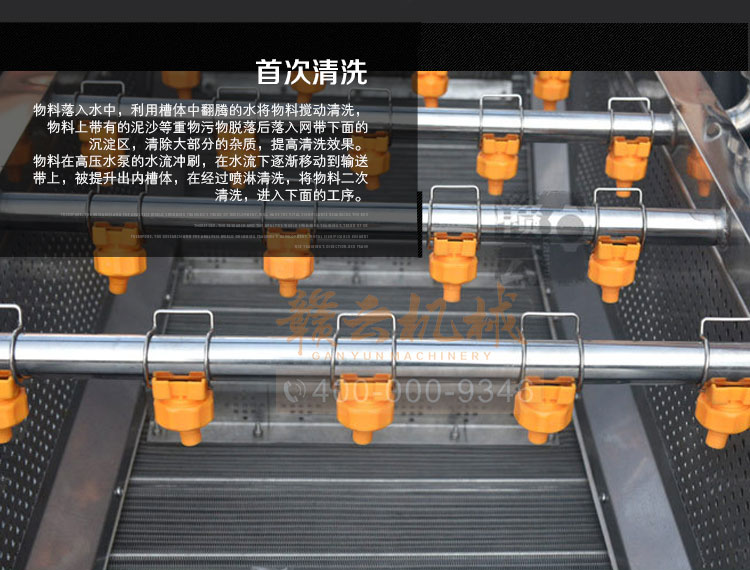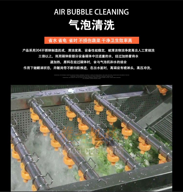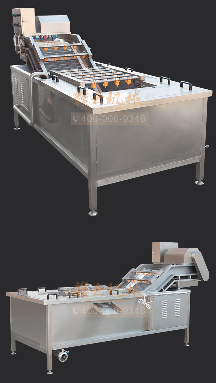 蔬菜清洗機有效的殺滅有害細菌,分解殘留農藥;通過清洗水循環利用,可節約80%的清洗用水用于清洗蘑菇、芹菜、菠菜、白菜等莖葉類蔬菜以及蘋果、西紅柿、辣椒、茄子、黃瓜、草莓等果蔬的主要設備,廣泛適用于蔬菜加工行業及廠礦、部隊、醫院、各大專院校等單位的食堂。