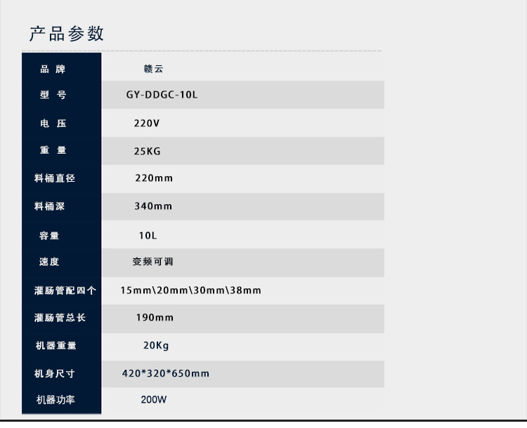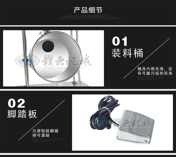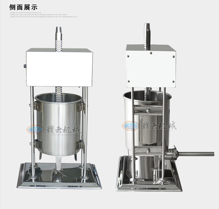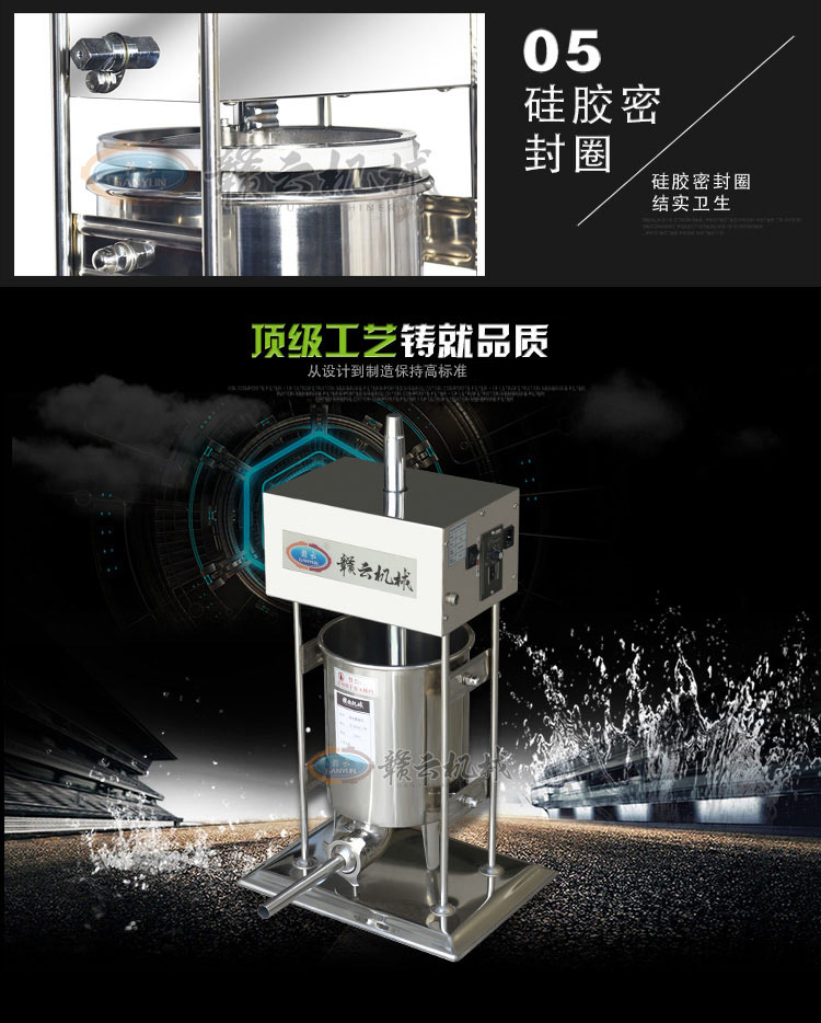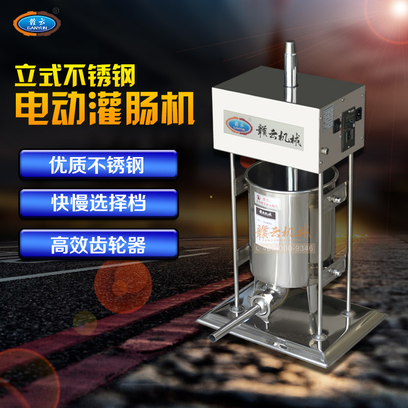 冬季灌腸新添專業灌腸設備,贛云牌立式不銹鋼電動灌腸機,專業灌制各種腸類,如臘腸、香腸、火腿腸、親親腸。變頻速度可調,灌腸讓你隨心所欲,整機采用全齒輪優質拉桿升降系統設計.腳踏開關隨意控制,配合自動升降系統及變速可調,灌腸速度快,效果好。
