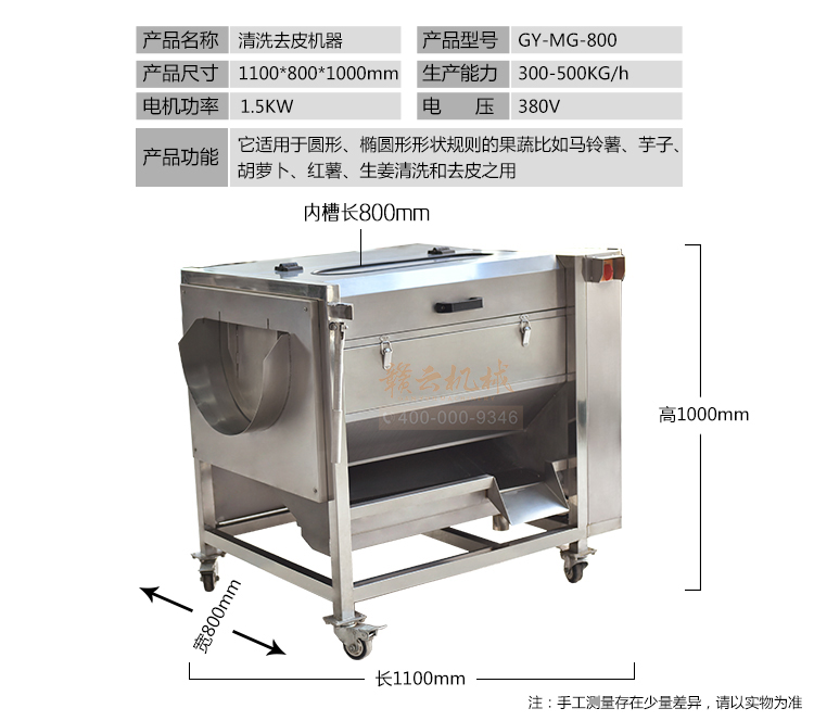 800型毛輥清洗去皮機采用優質波浪型毛輥材質設計,可對物料凹槽部位淤泥毛皮清除清洗,相比于普通型毛輥清洗去皮機清洗效果更佳,適用于薯片加工廠、毛芋加工廠、生姜加工廠、企事業單位食堂、中央廚房等球根類果蔬加工前期處理設備。