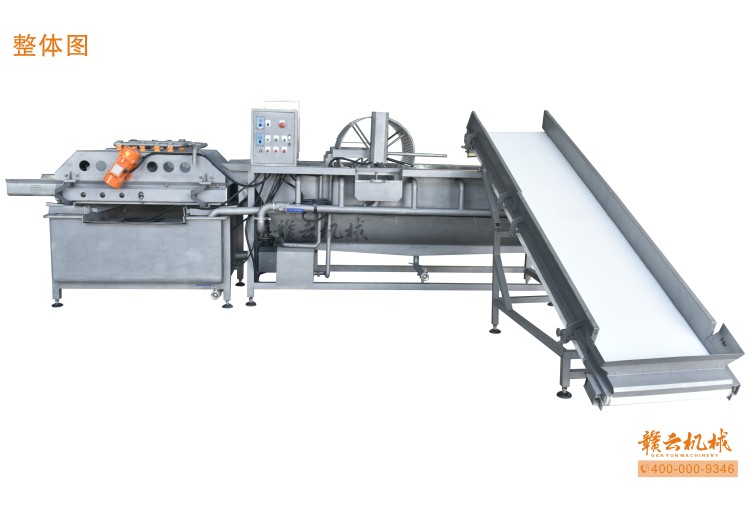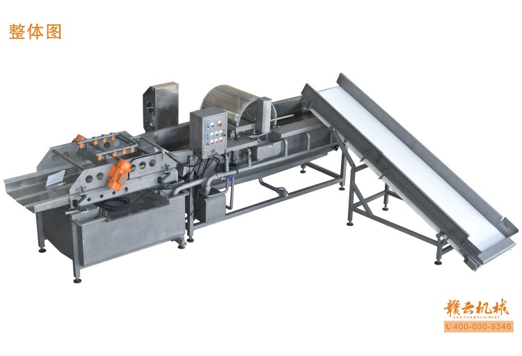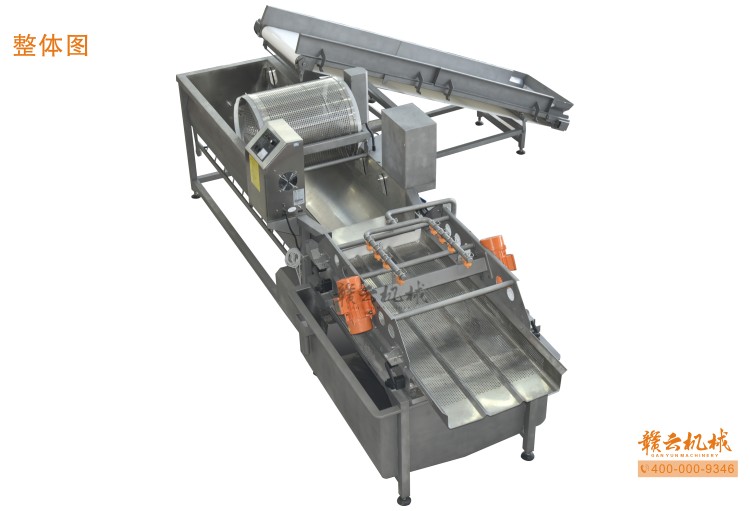 本機由皮帶提升機+渦流振動清洗機組合而成,皮帶提升機主要用于將切割出來的蔬菜提升至渦流清洗水槽內,經由6個扇形噴頭高壓噴水形成水槽內水流成渦流狀而命名為渦流清洗,渦流清洗機上端設置有液壓式排渣滾筒裝置,并引導蔬菜向高頻振動機方向移動,此外渦流清洗機還裝置有臭氧發生器,主要用于去除農藥殘留之用,高頻振動機上端設置有多個噴頭,對蔬菜進行二次沖洗,達到清洗干凈的作用。振動篩振動加快抖落水珠和細小顆粒,使得所清洗出來的蔬菜能直接用于真空包裝或食堂熟食加工之用。與本套設備配合使用的還有前期的數字切菜機和蔬菜分選挑選機。贛云機械,掌握肉丸加工成套設備,中央廚房凈菜設備核心技術。咨詢電話400-0009346