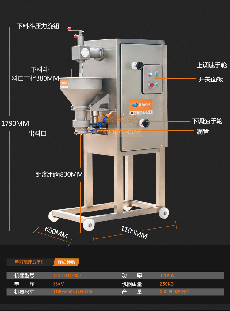日產3噸的肉丸機,你見過嗎?這是怎樣的機器能做的這么快,堪稱肉丸界的神*器,贛云660型單刀高速成型機,每分鐘快速可成型600個肉丸,一天成型可達3噸,每小時成型約400kg,采用半開放式切刀高速來回切割,雙調速設計,適合各種肉丸成型