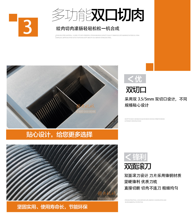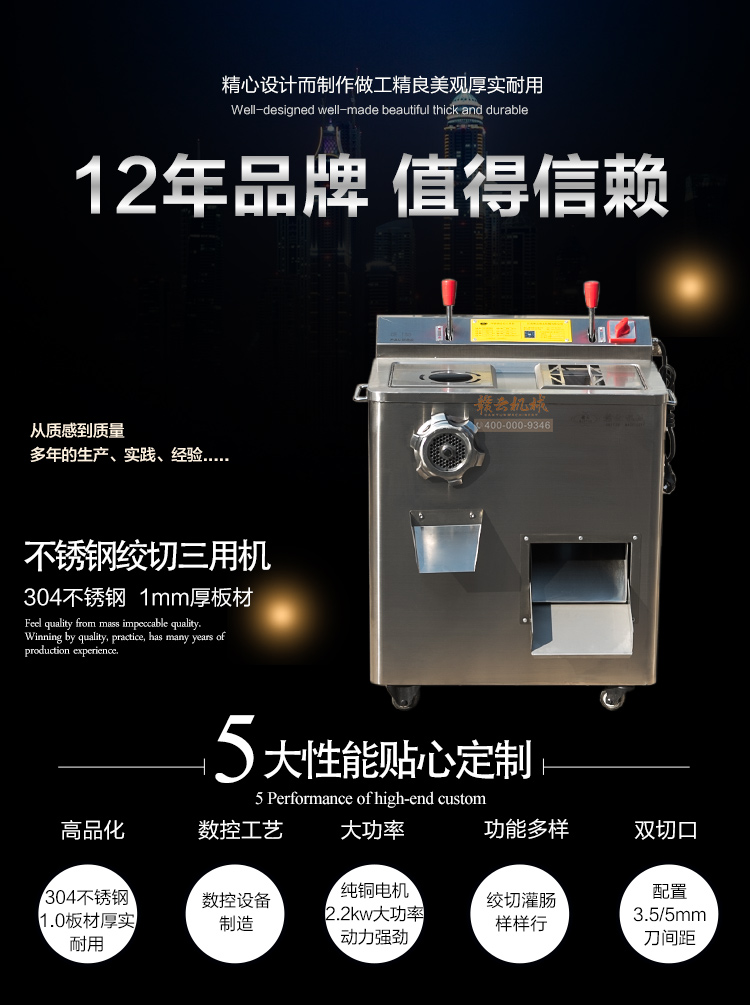 贛云2017款絞切三用機火熱開賣,新品上市,全304不銹鋼板材封裝設計,外形美觀大氣,配有3.5mm和5mm切肉片雙入口,可切兩種規格肉片,整機配備2.2kw大功率純銅電機作為動力,絞肉切肉力度強而有力,速度快,離合開關控制,操作隨心。