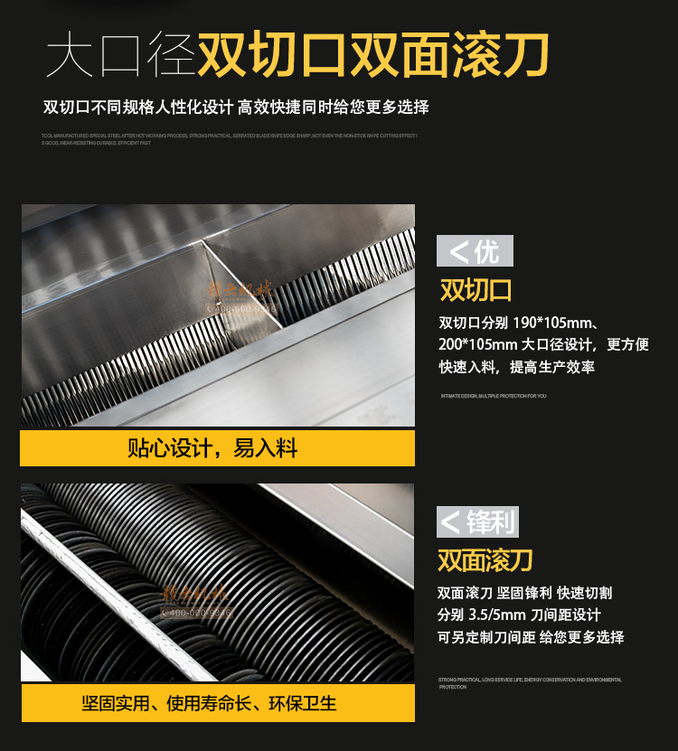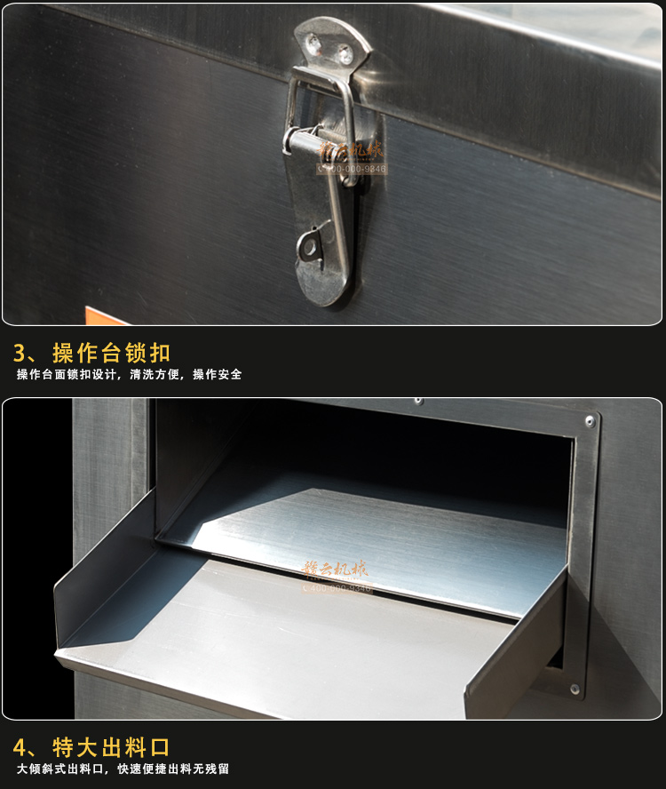贛云2017款大型切肉機(jī),工程款切肉片肉絲機(jī),采用1.2mm304不銹鋼板材加工設(shè)計(jì),配備3kw大功率純銅電機(jī),380v工業(yè)用電,使得產(chǎn)品性能穩(wěn)定,雙滾切刀設(shè)計(jì),切肉效率高,雙規(guī)格切肉刀具組合,適合大眾需求。