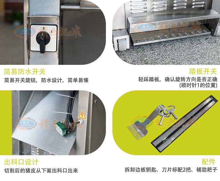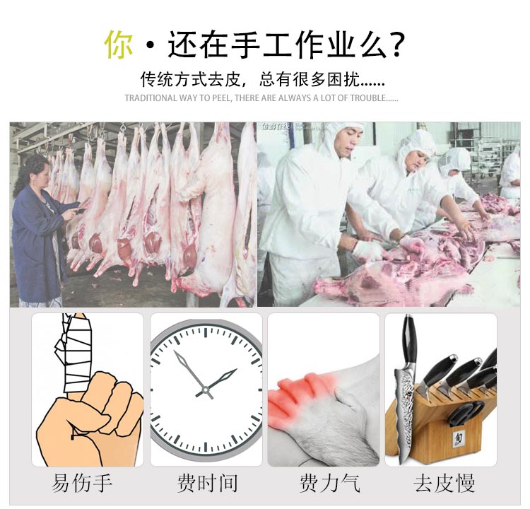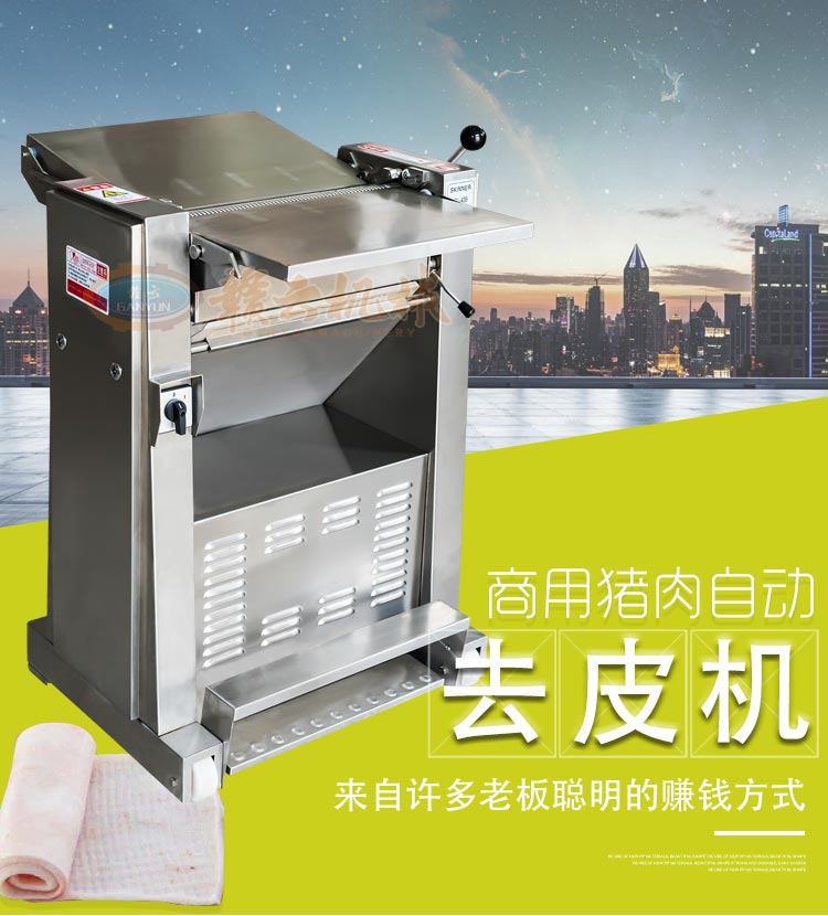 豬肉扒皮機,扒皮用什么好,扒皮機那個牌子的好豬肉去皮機扒皮機采用不銹鋼制造,去皮機符合食品衛生標準。去皮機可調式刀座,豬肉去皮機方便調整去皮厚度。去皮機采用優質刀片,去皮皮厚可調節,去皮機附移動輪,移動方便。扒皮機腳踏板式操作安全開關,操作安全。