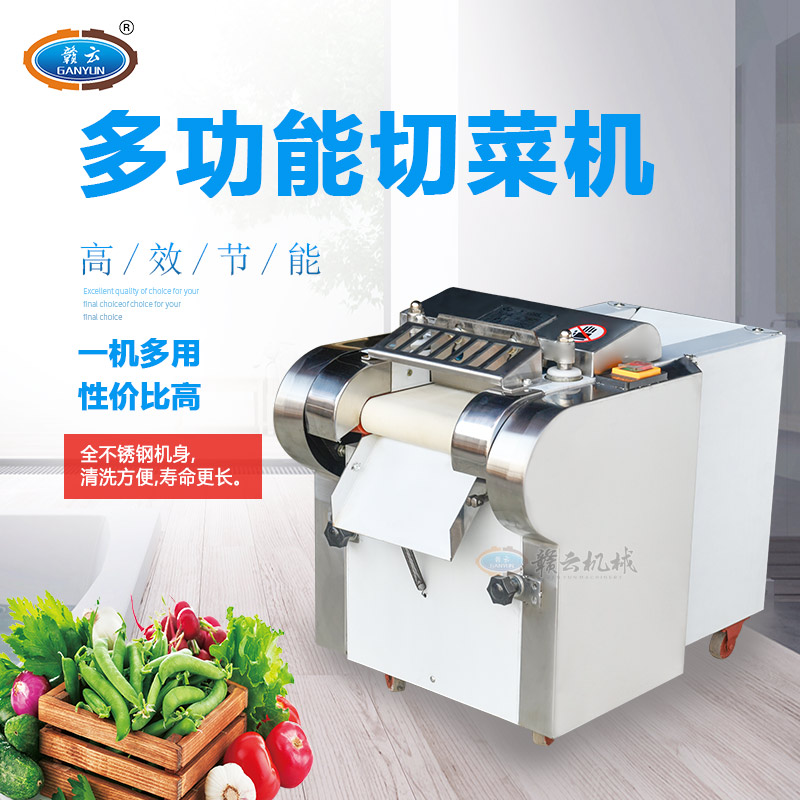 贛云牌多功能切菜機是根據多種樣機在實地使用中存在不足之處,反復改進設計制造,采用不銹鋼和全滾動軸承結構,具有外形美觀,成熟可靠,使用維修方便等特點。適用直蔬菜脫水、速凍、保鮮、腌漬等食品行業各類蔬菜。刀片距離可調節在0.1cm-2cm之間即切片、丁、絲厚薄在0.1cm-2cm。