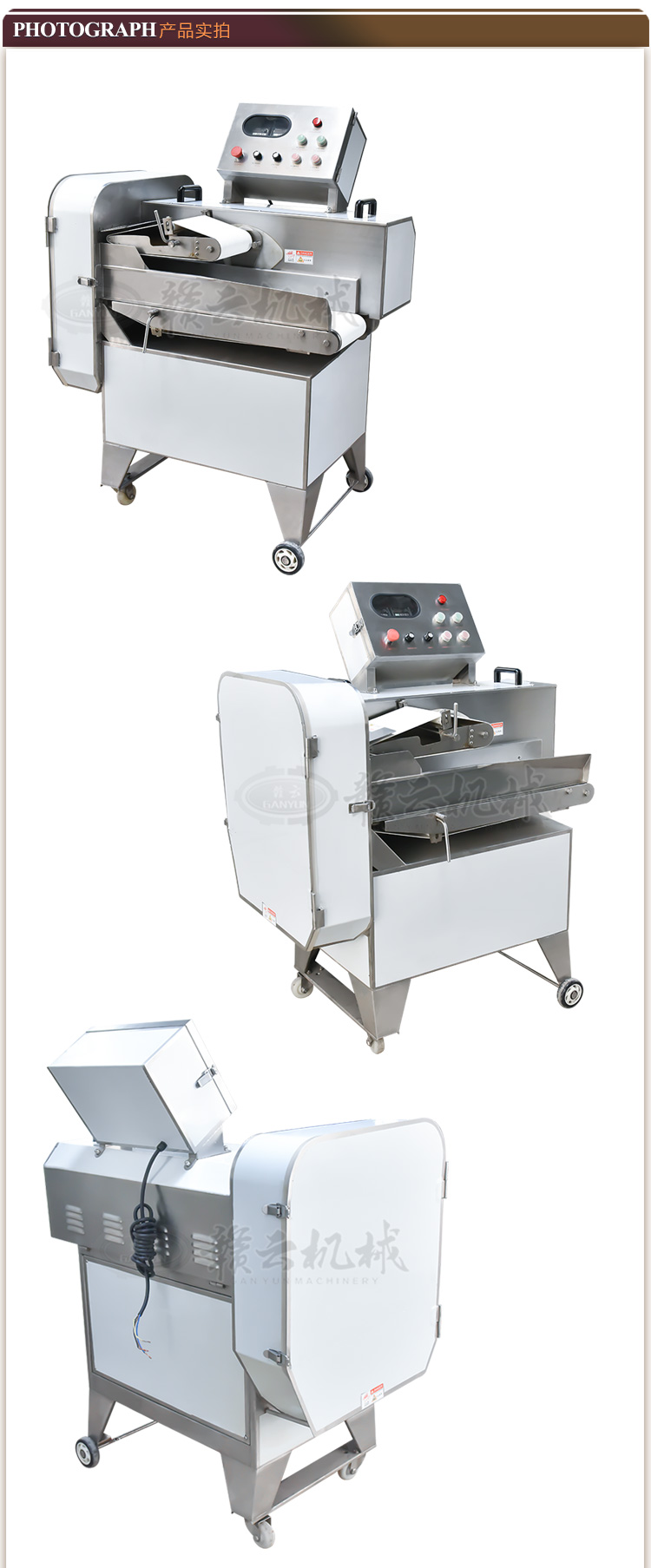 大型切菜切肉一體機用途可切長條狀蔥、大蒜、韭黃、芹菜、高麗菜、大白菜、魚肉、豆干、菠菜、瓜類等、可以連接自動化生產線。針對食品加工廠切肉量大的特點,該機更換切肉刀具后可將凍肉、鮮肉、等一次性切成肉片,具有機型大、產量大、低速
