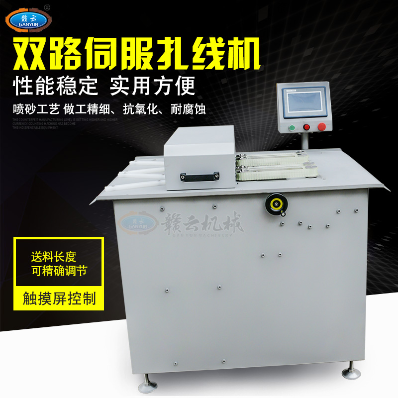 全自動動雙路高速香腸扎線機,自動分份,自動繞線,全程自動化控制。該機采用了優質電機和本公司自主研發的控制系統,機身全不銹鋼制造、效率高、易操控、節約生產原料等優點,產品長度的調節可以隨心所欲