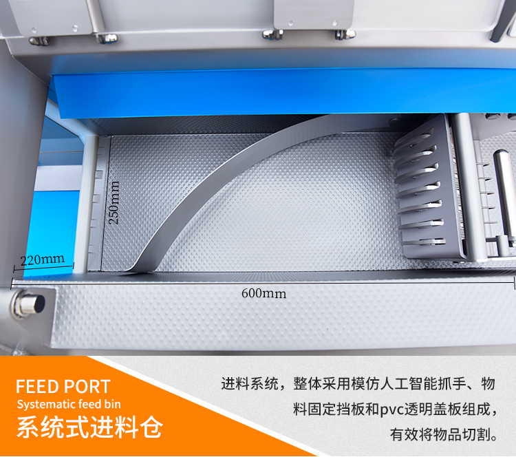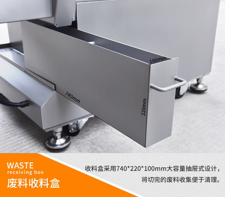 機器采用鋒利加厚鋼刀,鋒利耐用,平滑刀主要用于切熟肉和鮮肉,鋸齒刀主要用于砍凍肉和帶骨的家禽,機器默認配置平滑刀。機器采用手動和自動兩種切換模式,并且厚薄斷續可輕松調節。