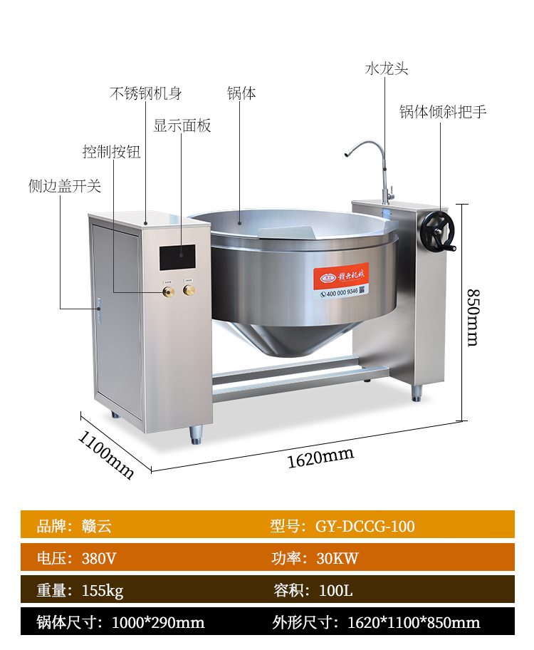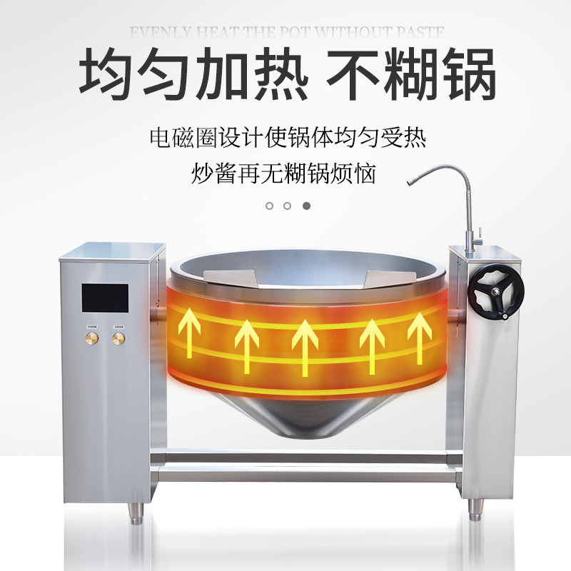 大型商用炒鍋,采用物理不粘技術,加熱均勻,操作簡單,可傾斜電磁爐炒鍋,方便出料,溫度控制系統,定時功能,采用電磁加熱,廣泛用于中央廚房熱處理區、大型商用廚房設備、預制菜熱加工設備,用于提升食品加工效率