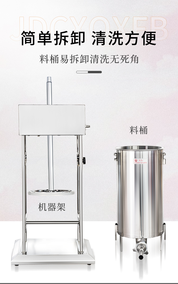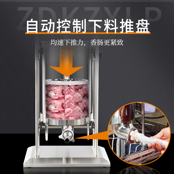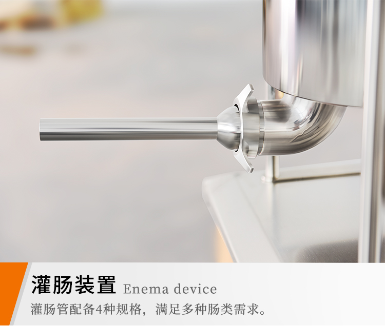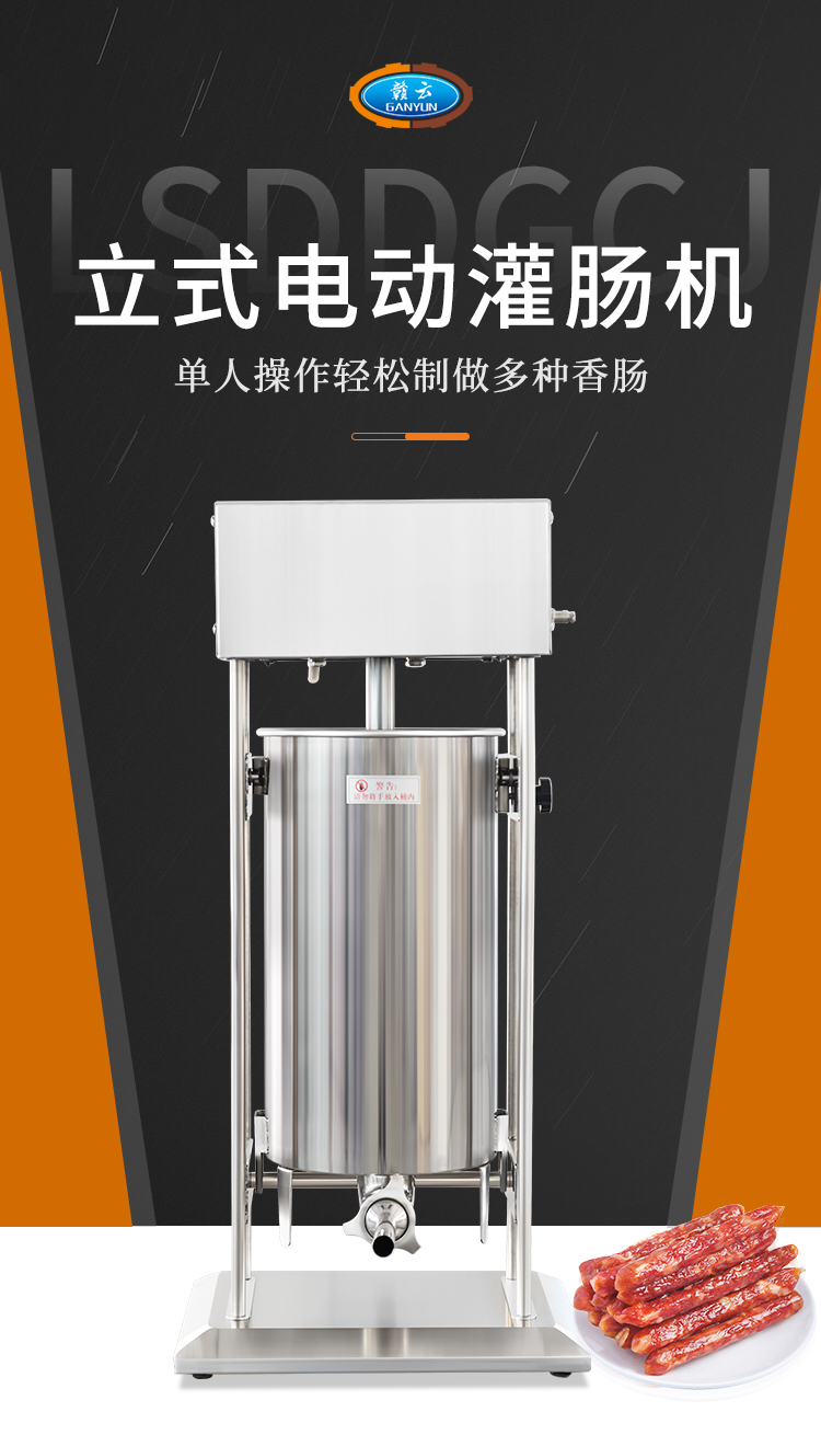 贛云機械電動灌腸機采用不銹鋼材質,灌腸機可以單人操作,實現輕松灌腸機,下料裝置是由推料盤和密封圈組成,通過電動驅動,均速下推力,讓下料穩定漿料不粘桶壁。機器適用物料范圍較廣,無論是四川香腸,湖南臘腸,脆皮腸,山東香腸,廣式臘腸,河南臘腸都可以輕松灌制