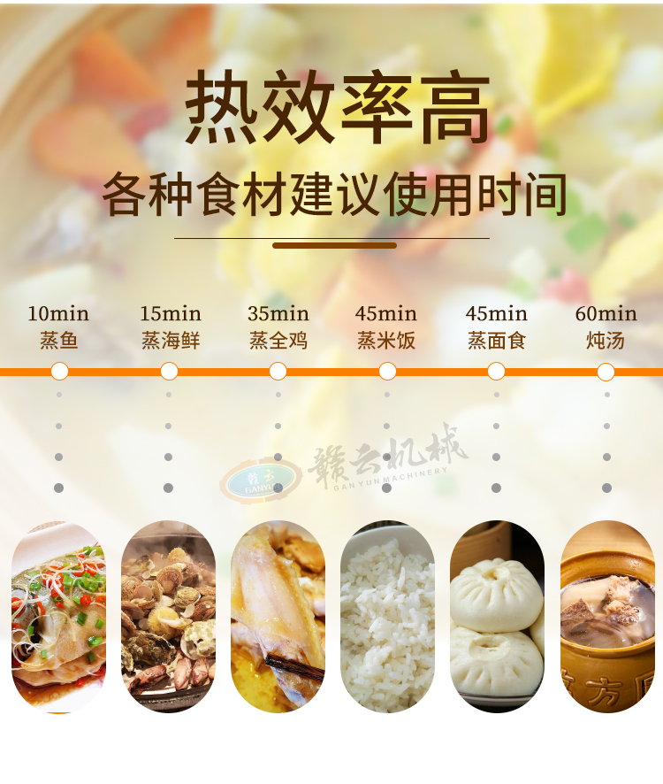 適用于蒸米飯、蒸包子、蒸饅頭、蒸海鮮、燉湯、蒸魚、蒸粽子等,可選用電款、燃氣款。