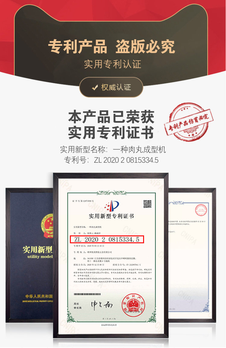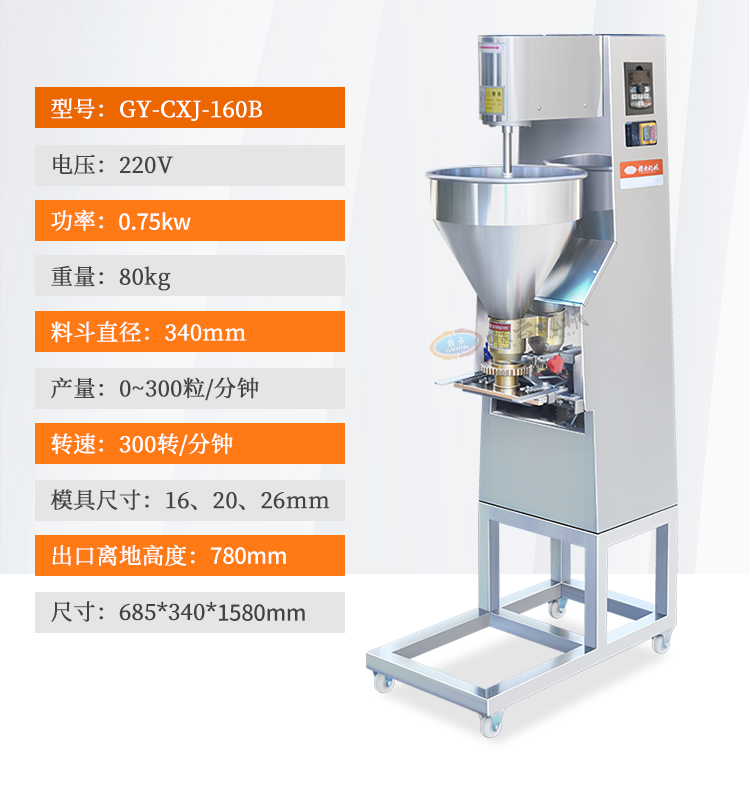 用于高效成型各種肉丸、魚丸、牛肉丸、蝦丸、素丸、豬肉丸、羊肉丸、雞肉丸等,形狀統一效果好。