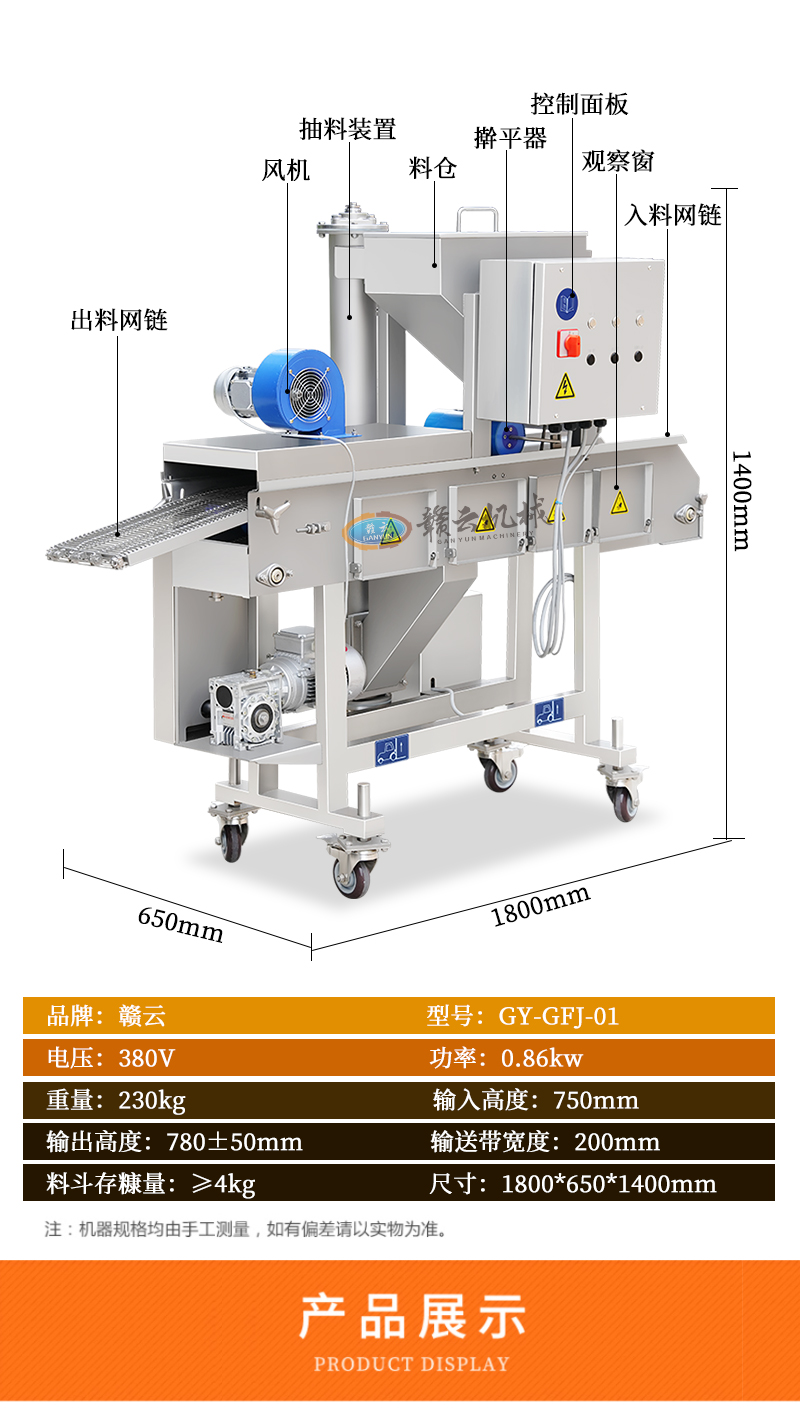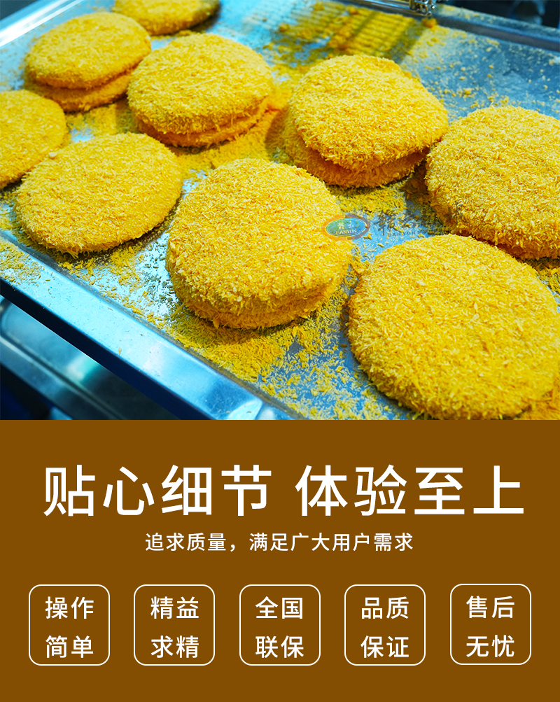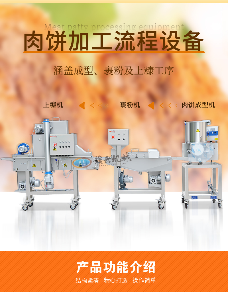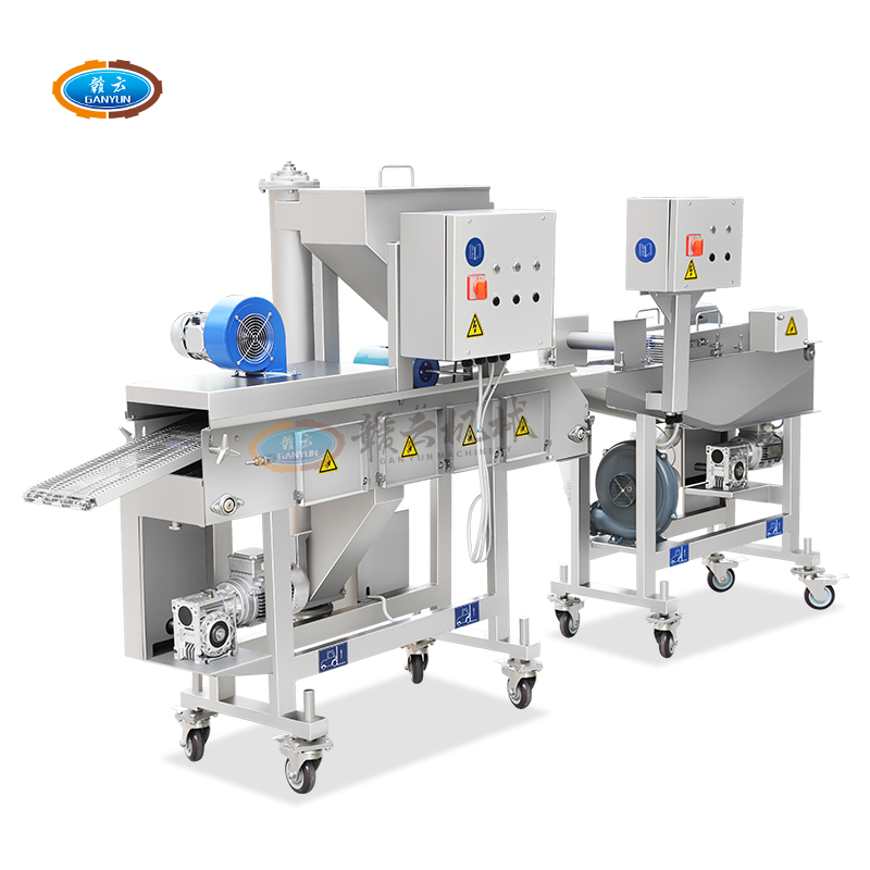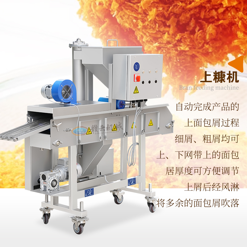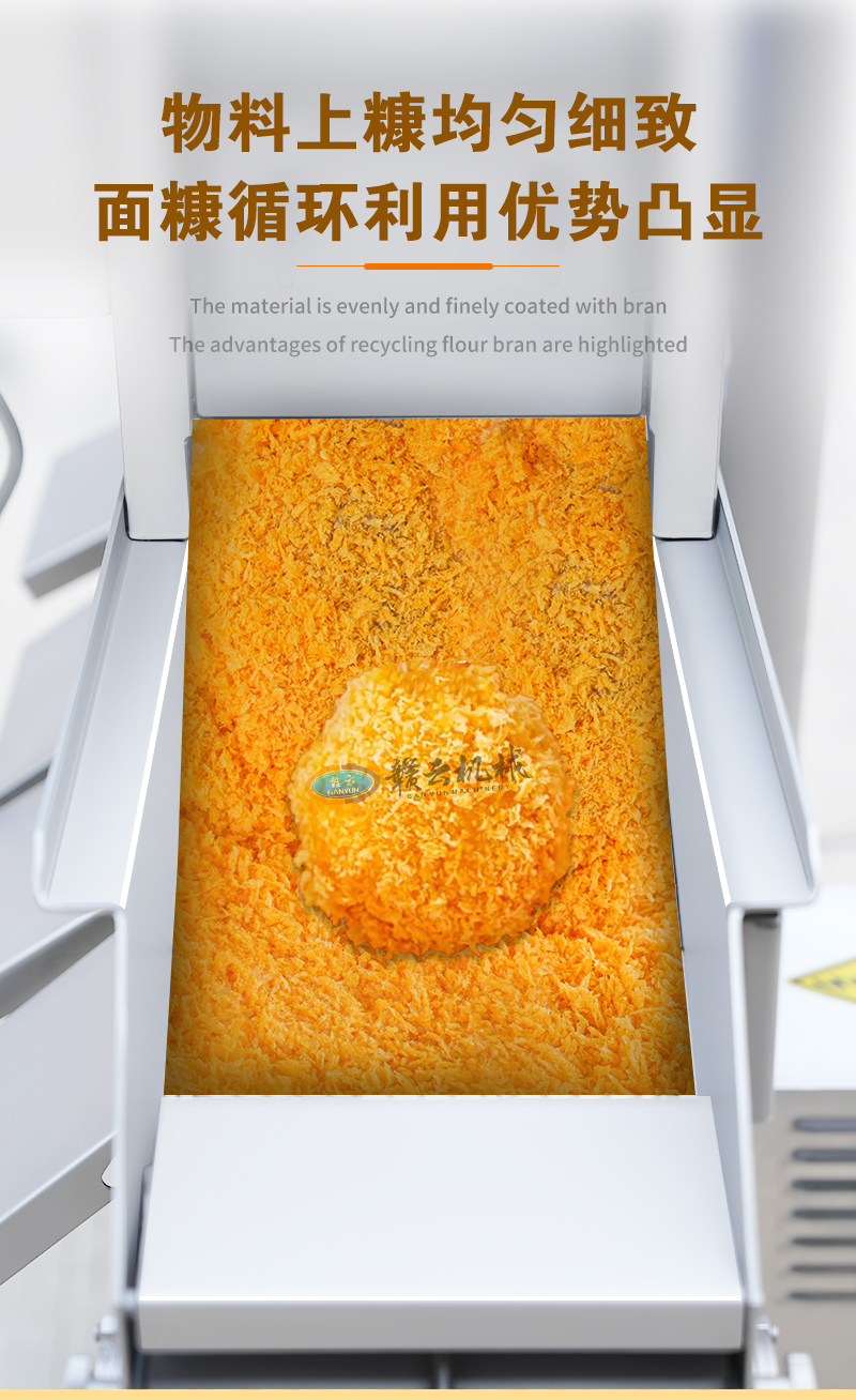 用于雞排、肉餅、魚排、牛排等各種油炸食品的快速自動上漿裹粉。