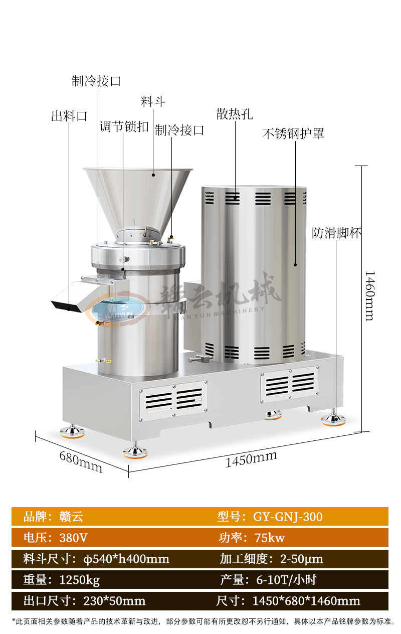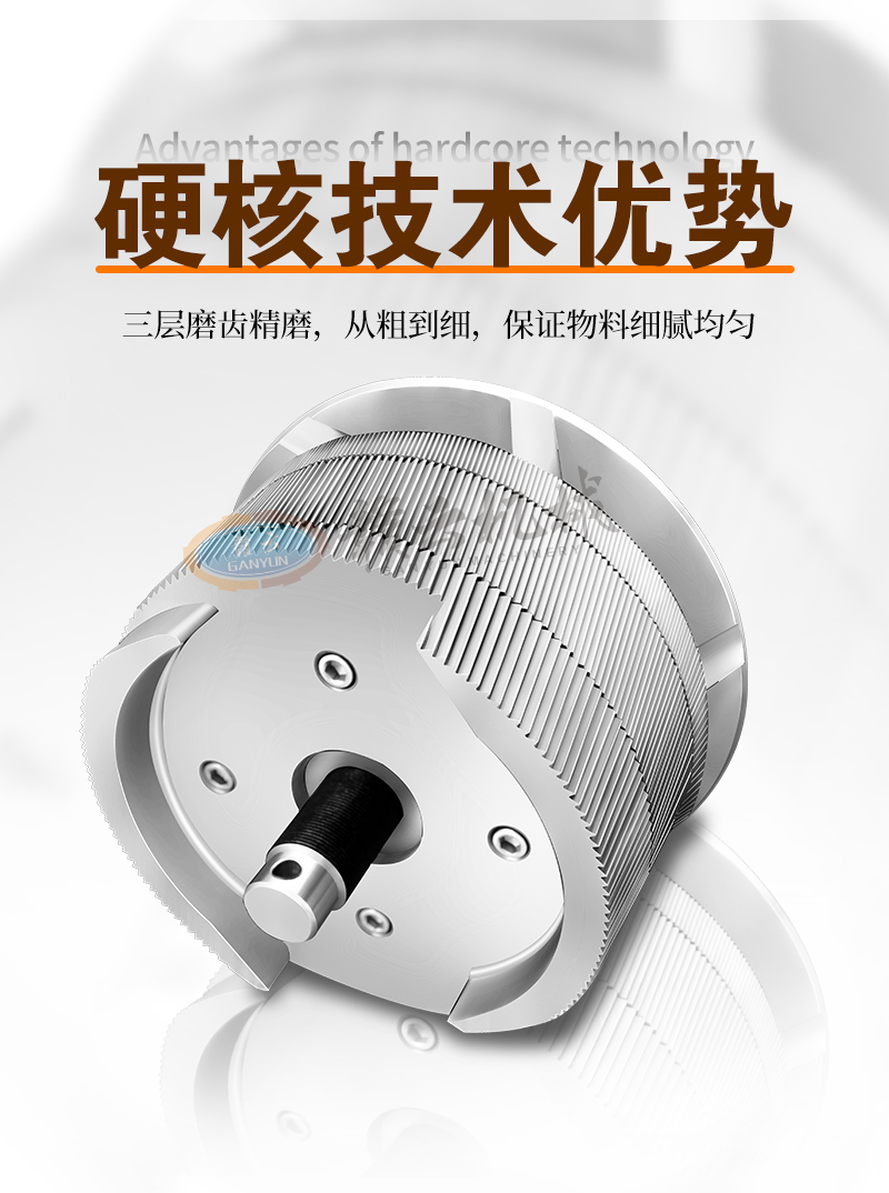 專為食品等原料加工設計,配備三層磨齒精磨技術,支持肉漿/堅果/藥材等上百種物料加工,可調節式細膩度。