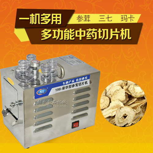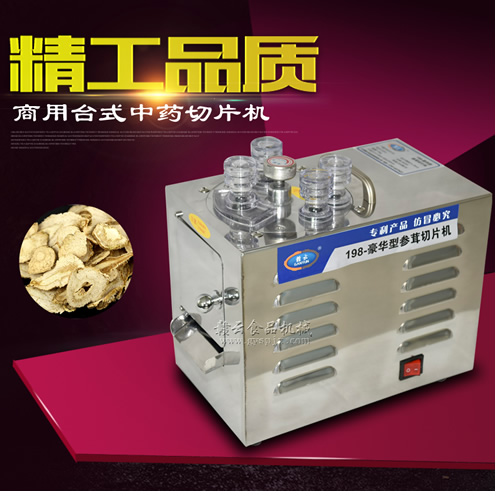 本機選用單相電機配套,采用高檔軸承,并安裝四把刀片在刀盤上,速比慢而切片功效高,切片厚薄可以調節,廣泛適用于中藥房、藥店、中藥加工場等。本機具有體積少、效率高、操作簡便、精巧美觀,即省電又安全等特點。