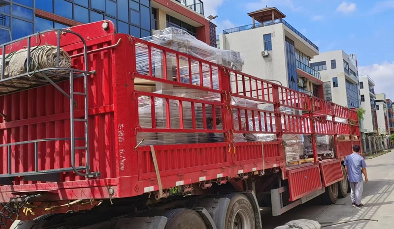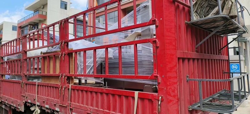 湖北客戶訂購的小酥肉油炸生產線將由專車發貨,自動化生產設備給客戶提高生產效率和產品質量