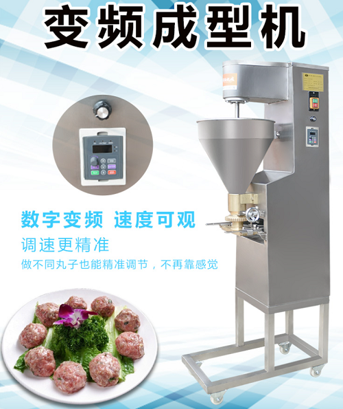 贛云新款變頻雙調速肉丸成型機:這臺設備適用性比較廣泛,產量也是達到每分鐘600個,魚丸肉丸都可以成型,成型的丸子口感爽脆、表皮光滑、有韌性。這臺設備一直受到很多肉丸加工廠的喜愛。設備采用食品級優質不銹鋼材質,配備大品牌純銅電機,動力強勁。隨機配備四套不同尺寸的模具。機器的操作面板采用防水防漏電設計,讓安全不馬虎。