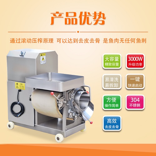 自動魚肉采肉機,別名又叫魚肉分離機,適用于海魚、淡水魚各種魚類。大魚分割成段,小魚直接采肉。魚肉采肉機是我廠技術人員根據國內魚類制品,生產工藝要求,結合我國實際需求,吸取臺灣、日本同類機械精華,精心研制而成。該機專門用于各種淡水、咸水魚類、蝦類去皮骨,取凈肉的專用機械。該機結構精密,高效實用,操作方便,經久耐用。本機適用于廣大魚蝦類制品專業廠、食品廠、漁船等單位。有效取代千百年來手工采取魚肉的艱苦勞動過程一臺機器相當于30個人的手工工作量,每小時凈肉400公斤。