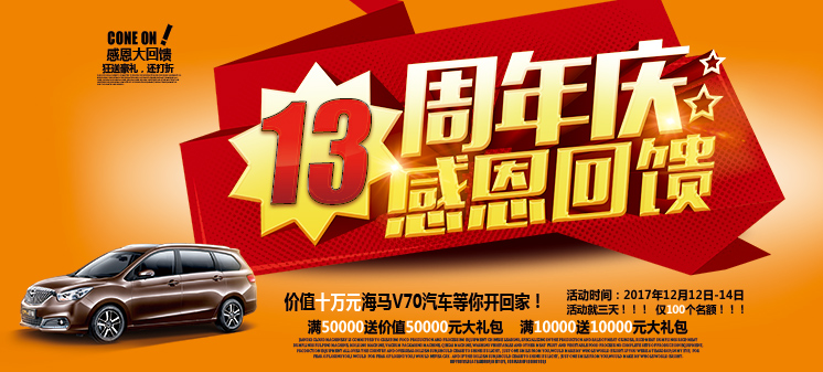 還有汽車等你開回家;顒尤掌趦H限三天(12月12/13/14日),名額僅限前100名。交500元誠意金即可參加活動排隊搶購,誠意金可抵貨款,沒搶到就退還哦。