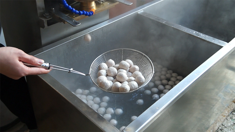 年末將至。贛云機械秉承客戶體驗至上,效果滿意為旨的企業服務宗旨,測試肉丸整體解決方案,品鑒現場制作肉丸的彈性、口感、脆度等。該套方案采用了32型絞肉機、28型高速打漿機、160貢丸成型機與智能加熱水槽。本套設備技術成熟性價比高是肉丸成套入門設備不二之選!
