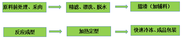成型操作要與斬拌操作連接進行,兩者之間不能長時間間隔,否則打漿后的魚糜在室溫下放置會因凝膠化現象而失去粘性和塑性而無法成型。成型溫度一般在50℃左右反應10min。